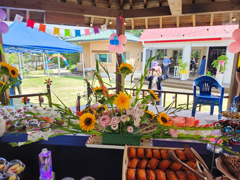 μ „λ‚ λΆ€ν„° 풍선과 μ‘°λͺ…μœΌλ‘œ 치유 μ‰Όν„°λ₯Ό μž₯μ‹ν•˜κ³ , κ°–κ°€μ§€ μŒμ‹μ„ λ§ˆλ ¨ν–ˆμ–΄μš”.