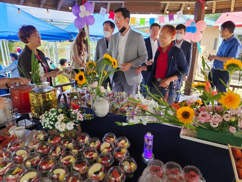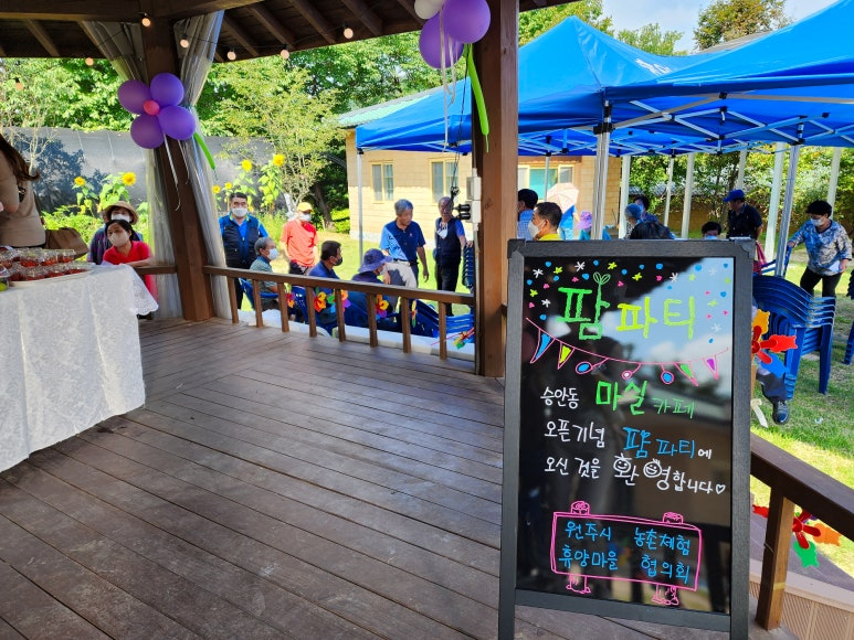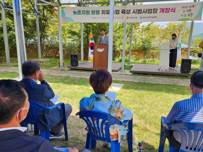 가을이 μ˜€λ‚˜ μ‹Άμ—ˆλŠ”λ° μ—„μ²­ λ”μ› λ˜ λ‚ , λ†μ΄Œμžμ› ν™œμš© μΉ˜μœ λ†μ—… μœ‘μ„± μ‹œλ²”μ‚¬μ—…μž₯ 개μž₯식과 λ”λΆˆμ–΄ λ§ˆμ„ 주민듀을 λͺ¨μ‹œκ³  νŒœνŒŒν‹°λ₯Ό μ—΄μ—ˆμ–΄μš”.